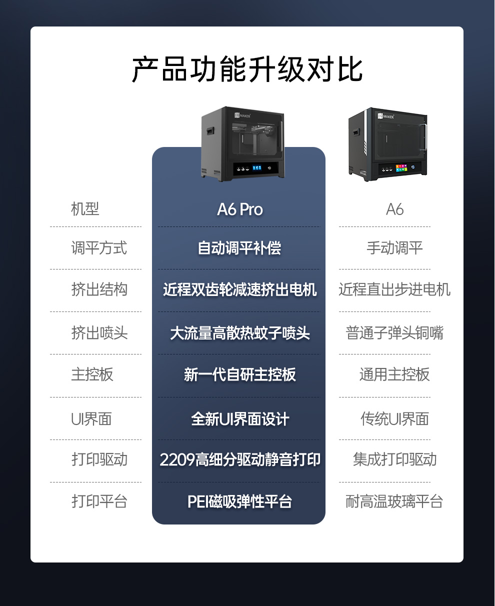 A6經(jīng)典,是對極光創(chuàng)新十多年來對3D打印機精益求精的精準呈現(xiàn),而A6PRO則是極光創(chuàng)新對3D打印技術(shù)未來的全新超越。