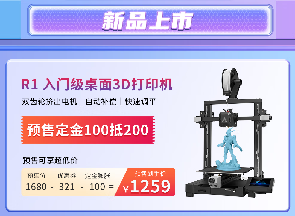 R1,全新入門級(jí)高精度3D打印機(jī),新手入門0負(fù)擔(dān)!