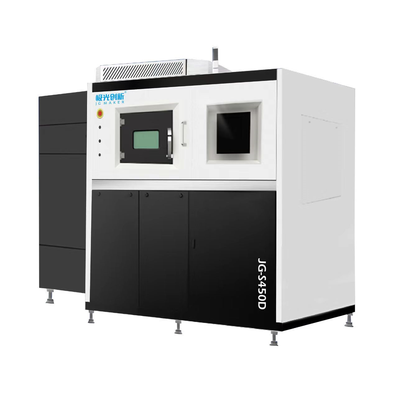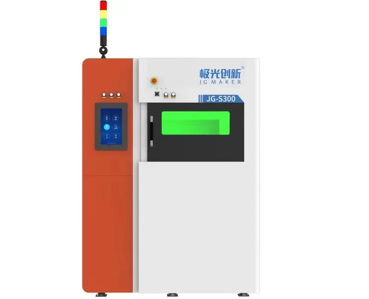 JG-S300金屬3D打印機是是本次活動發布的第一款金屬機型,它采用全新交互系統,具備智能層厚鋪粉適應,配備了上供粉控制系統、智能反吹過濾系統、高效三級過濾系統,支持不銹鋼、高溫合金、鈦合金、鋁合金等多種金屬材料。