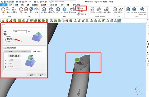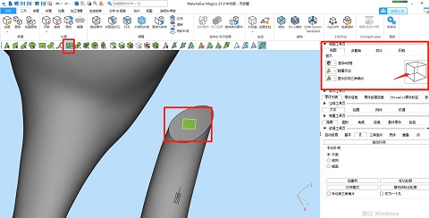 ⑤設(shè)計插銷,選擇“框選標(biāo)記并重畫網(wǎng)格”功能,選擇一個模型的接觸面并框選出插銷大小和形狀。可以借助視圖工具頁來精準(zhǔn)調(diào)節(jié)視圖方向。