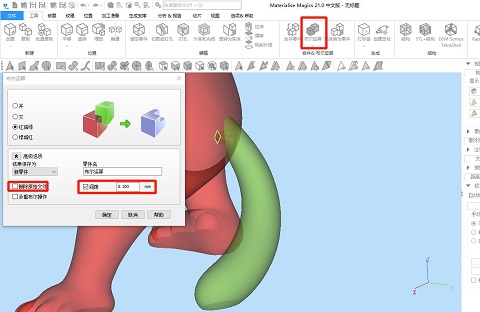 ③再通過“分離標(biāo)記”功能將標(biāo)記部位分離,這樣我們將得到2個帶有接口破面的模型,選中其中一個模型,移動指定距離遠方便后續(xù)操作。
