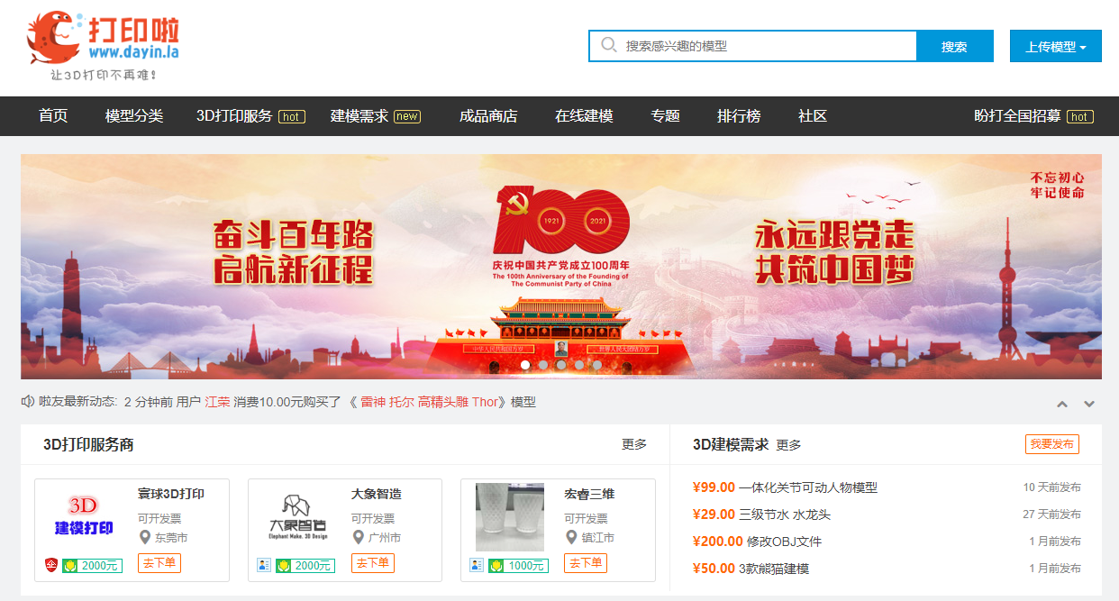 這是一個3D打印資源整合的一個網(wǎng)站,上面涵蓋的內(nèi)容也很全面,包括打印服務(wù)、社區(qū)、學(xué)習部落等模塊。