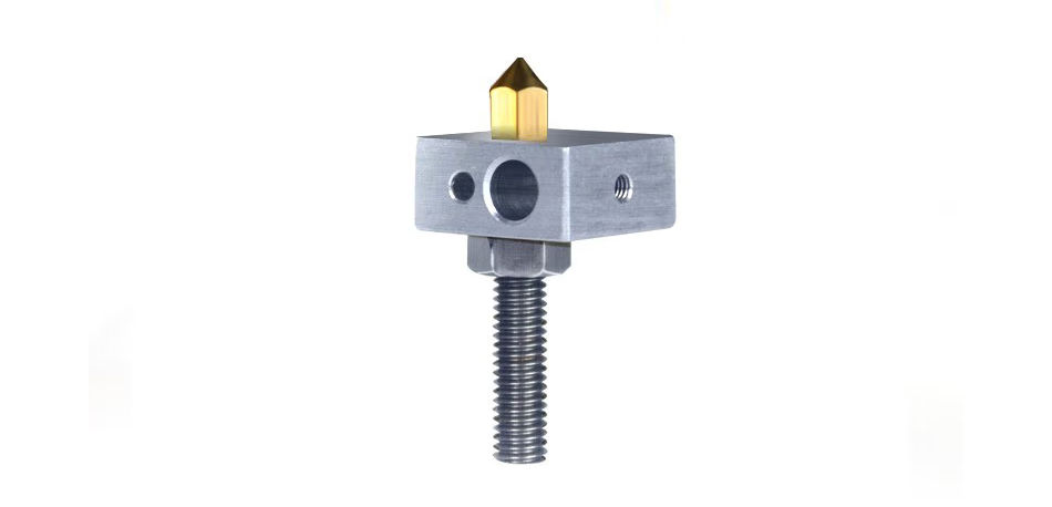 噴嘴是3D打印設備中十分重要的零部件之一,噴嘴規格參數的選取關系到模具成品的質量,當下市場上較為普遍的噴嘴類型結構,是噴嘴與加熱塊螺紋連接的內螺紋噴嘴,內部有大六角,小六角兩種,噴嘴口的形狀分為短厚噴嘴口,長尖噴嘴口