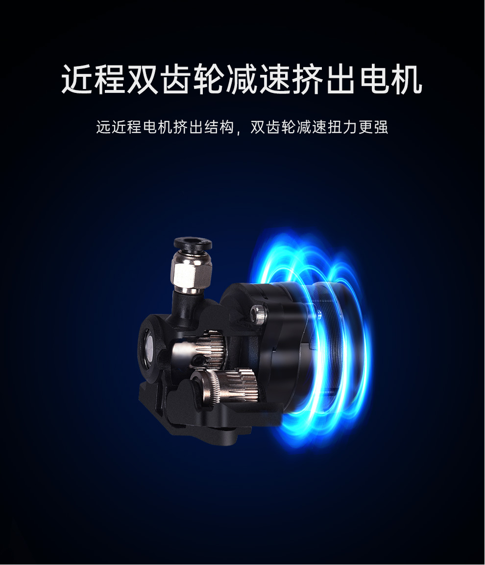 雙齒輪減速扭力更強(qiáng),高精度傳感器多點(diǎn)全自動(dòng)檢測(cè),打印自動(dòng)輔助補(bǔ)償,賦予3D打印機(jī)更強(qiáng)勁動(dòng)力,運(yùn)行流暢不卡頓