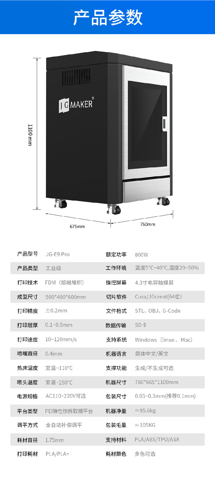 新品 JG-E9 Pro 工業(yè)級3D打印機