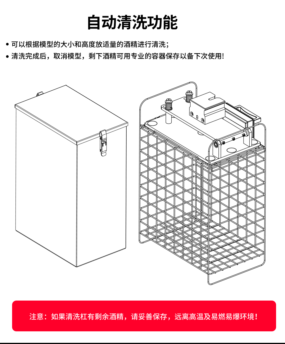 JG-L5 Pro 采用10.1寸6K透光固化屏,理論精度可高達0.045mm;增加打印、清洗、固化 三合一功能,內置攝像監控;對斷料檢測傳感器模塊做了升級,以及缺料會自動提示加料。