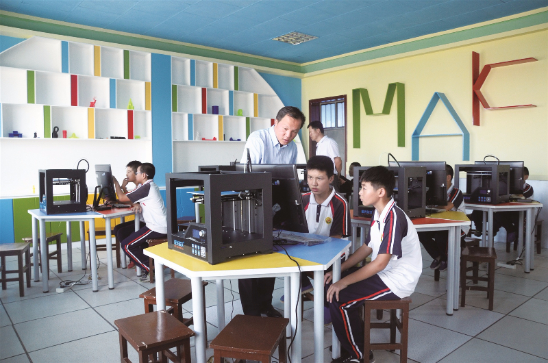 目前,“3D飛天創客空間”正式建成并投入使用。學生通過專業的中小學建模軟件,自己動手設計3D模型,運用3D打印機打印出茶杯、筆筒等實物,讓學生的想象變為現實。此外,在歷史、生物、地理、化學、物理等課程的教學中,輔助教具都可以通過3D打印制作出來,將抽象、難懂的教學變得直觀形象化,更好地激發學生的學習興趣。